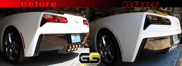 C8 Corvette GS Creations Tail Light Blackout Kit is a simple and cost-effective way to add a smoked tail light tint cover over your Rear Tail Light Reflector/ Brake/ Reverse light / Turn Signal. you use your brake, reverse lights or turn signals they are still highly visible through the blackout covers. We have been using this level of smoke on all of our kits since the C5 Corvette!