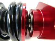 C5 Corvette LG Motorsports GT2 Coil Overs. LG Motorsports has always had their G2 Bilstein/Hyperco Corvette coil-over shock package, but many of their customers wanted an adjustable shock, so they went to work on the LG Motorsports GT2 Coil Over and made a first-class package, just the way you would want it for a race car without welding new mounts in place. This is what we came up with and we did it with no compromises. We did our best to avoid the compromises. LG has a spherical bearing set up on their shocks in all mounting locations other than the bottom of the rear shock "Fork" mount. LG did this because of the precision that the bearing offers. Precise and smooth operation that does not interfere with the shock function. Spherical bearings are the best option for coil-over mounts. Rubber mounts cause a "Trampoline" effect that must be overcome before the shock can actually work. Rubber also changes Bilstein the spring rate momentarily until fully compressed. In addition, rubber causes side loads in the shock rod and will eventually damage the shaft. Plastic or Delrin eliminates the "rubber/trampoline" effect, but it introduces new friction that interferes with the operation of the shocks. Forces are forces and the friction involved in a Delrin/plastic mounting system introduces "Hysteresis" losses that interfere with your shock operation.